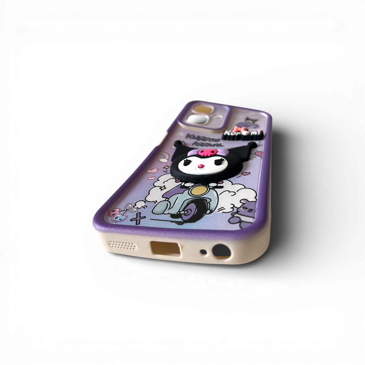 Design Kuromi Premium : Arbore une figurine centrale en relief 3D de Kuromi sur son scooter pour un effet tactile original.