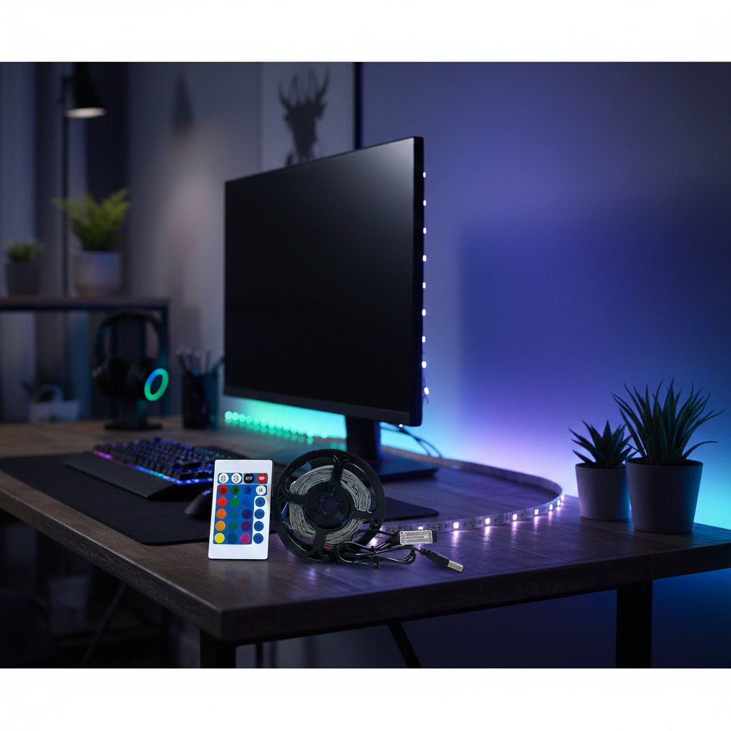 Transformez l’atmosphère de votre intérieur en un instant avec ce ruban LED RGB polyvalent. Que ce soit pour sublimer votre setup gaming, créer un rétroéclairage derrière votre téléviseur ou ajouter une touche de couleur à une étagère, ce kit est la solution idéale. Grâce à son alimentation USB 5V, il s’installe partout en toute simplicité. La télécommande incluse vous offre un contrôle total sur l’ambiance, vous permettant de choisir parmi une multitude de couleurs et d’effets dynamiques pour personnaliser votre espace selon vos envies.